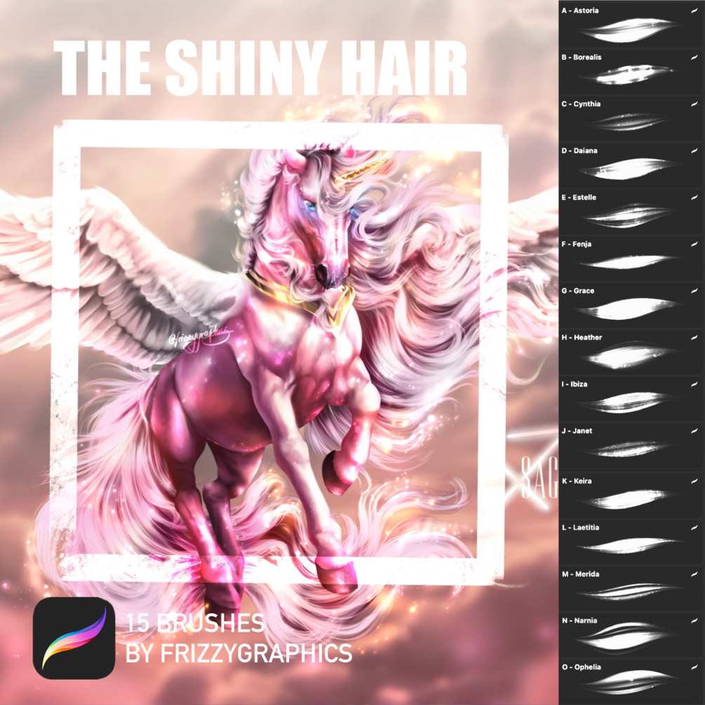 15 well made shiny hair brushes for Procreate to easily create glittery hair for any artwork.
